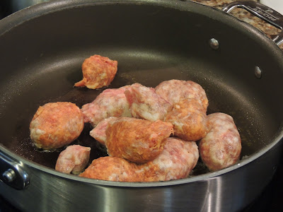 Begin by removing the sausage from their casings and add to a hot pan…